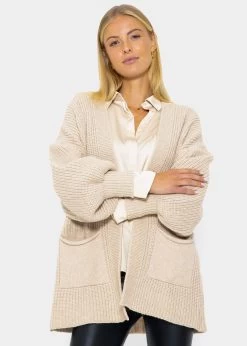 Dieser Cardigan vermittelt sofort ein Gefühl der Sinnlichkeit. Das Modell kommt in einer modernen Oversized-Passform, mit überschnittenen Schultern und gerippten Ärmel- und Saumabschluss. Die offene Silhouette erzeugt eine schmeichelhafte Linie und ermöglicht eine mühelose Schichtung über unterschiedliche Outfits. Aufgesetzte Taschen verleihen einen praktischen, sportlichen Look. Der Cardigan wurde aus super weichem Strick gefertigt, der dich gemütlich durch kühlere Tage begleitet und stellt das perfekte It-Piece für ein cooles Outfit dar.