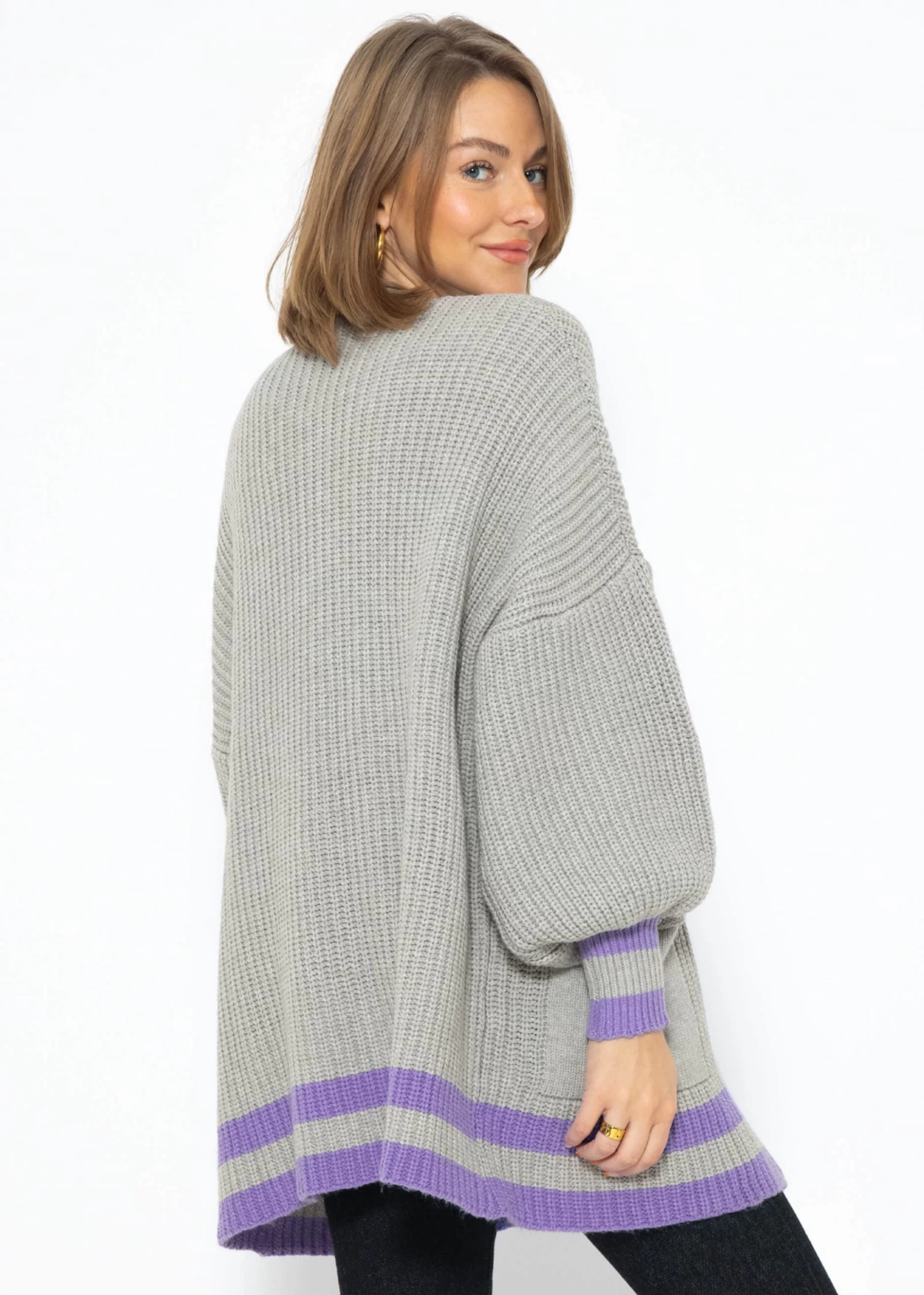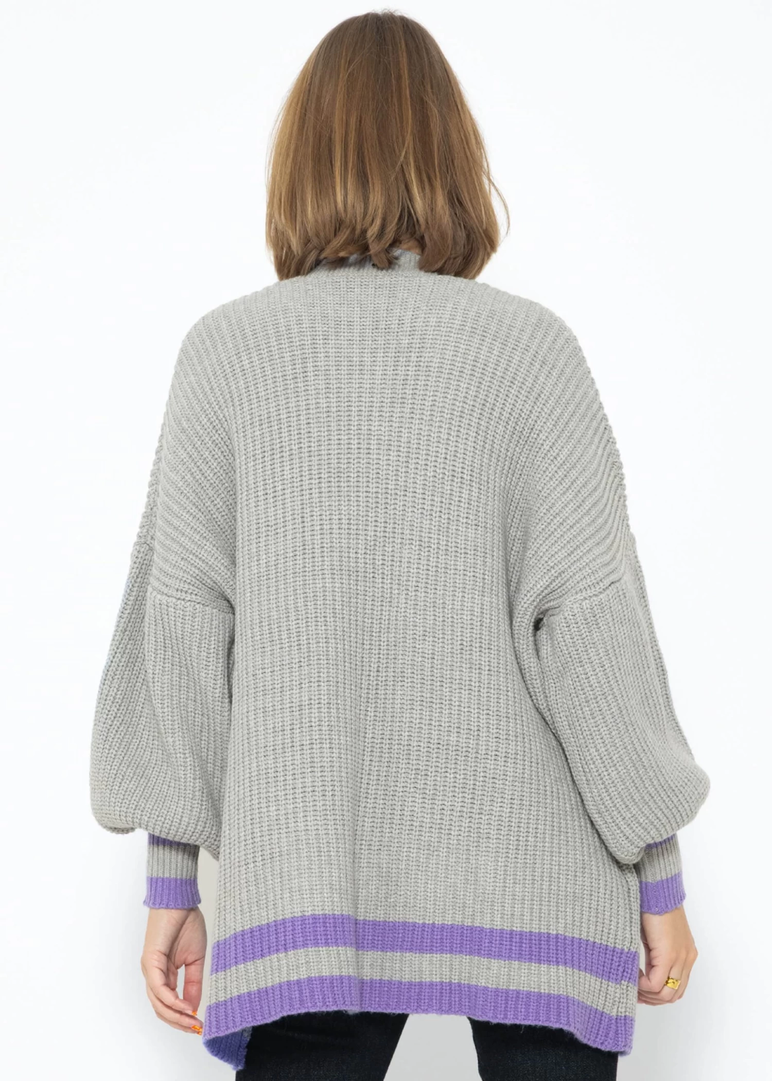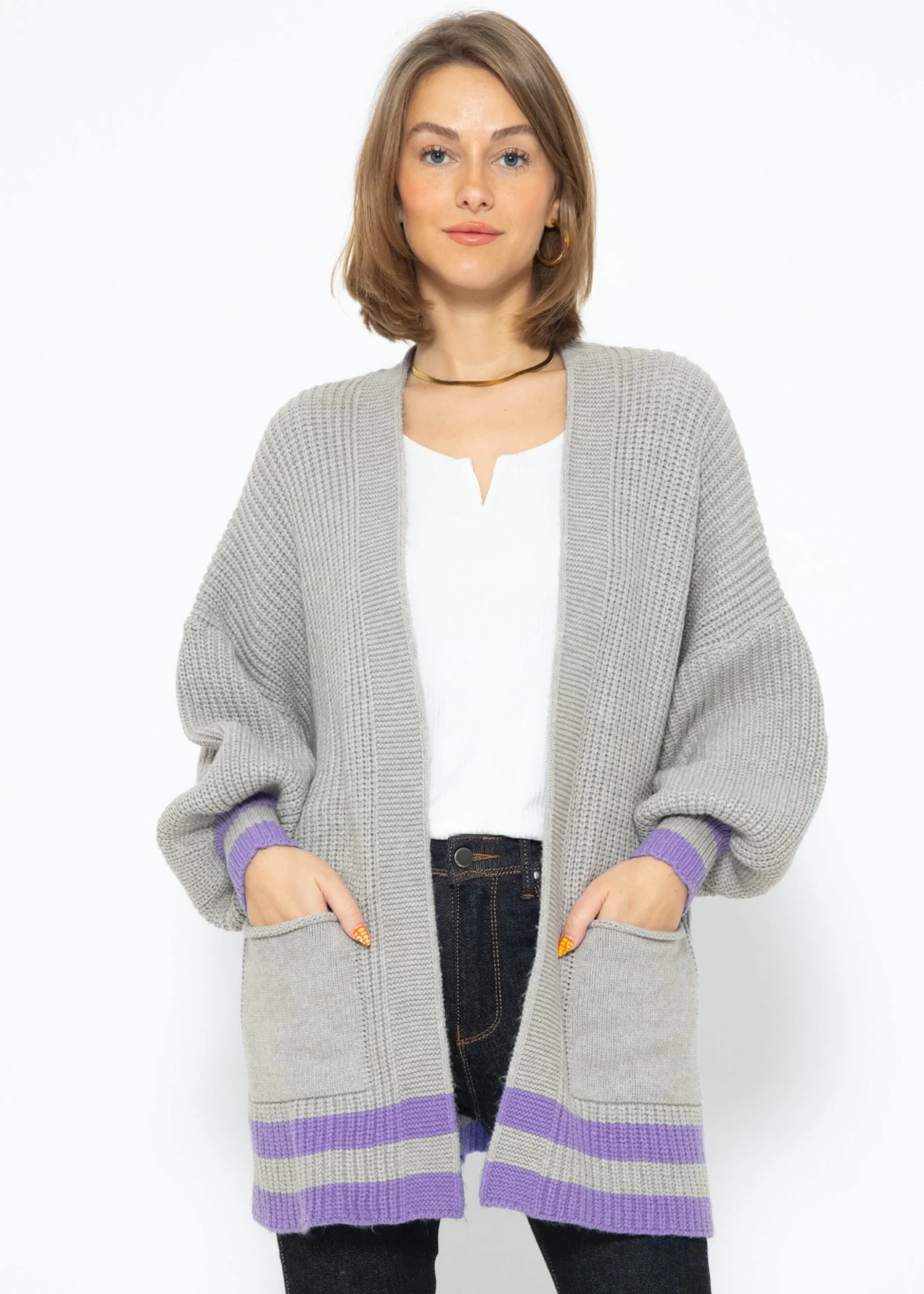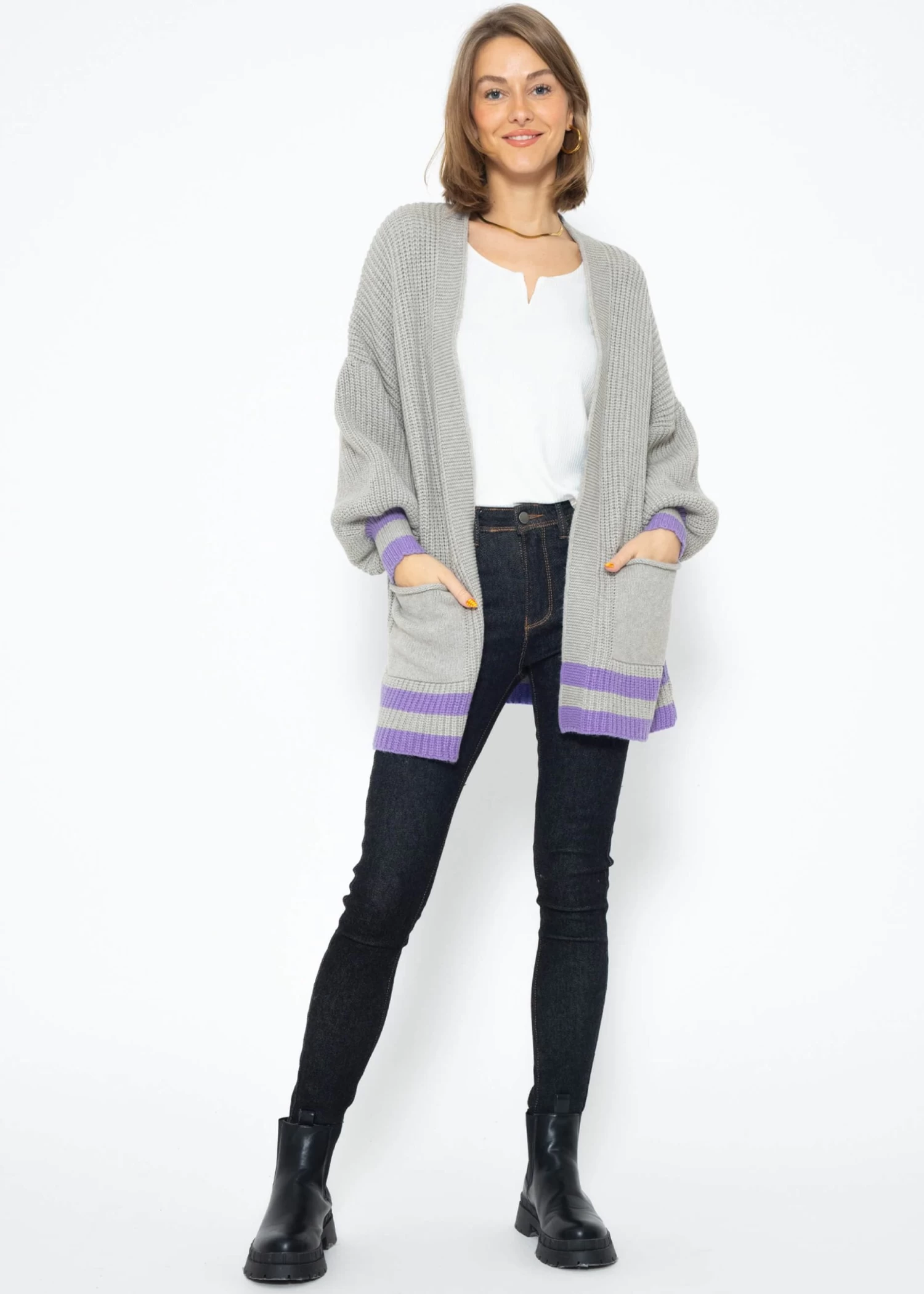 Soft Strick Cardigan mit Taschen in Grau und Lila