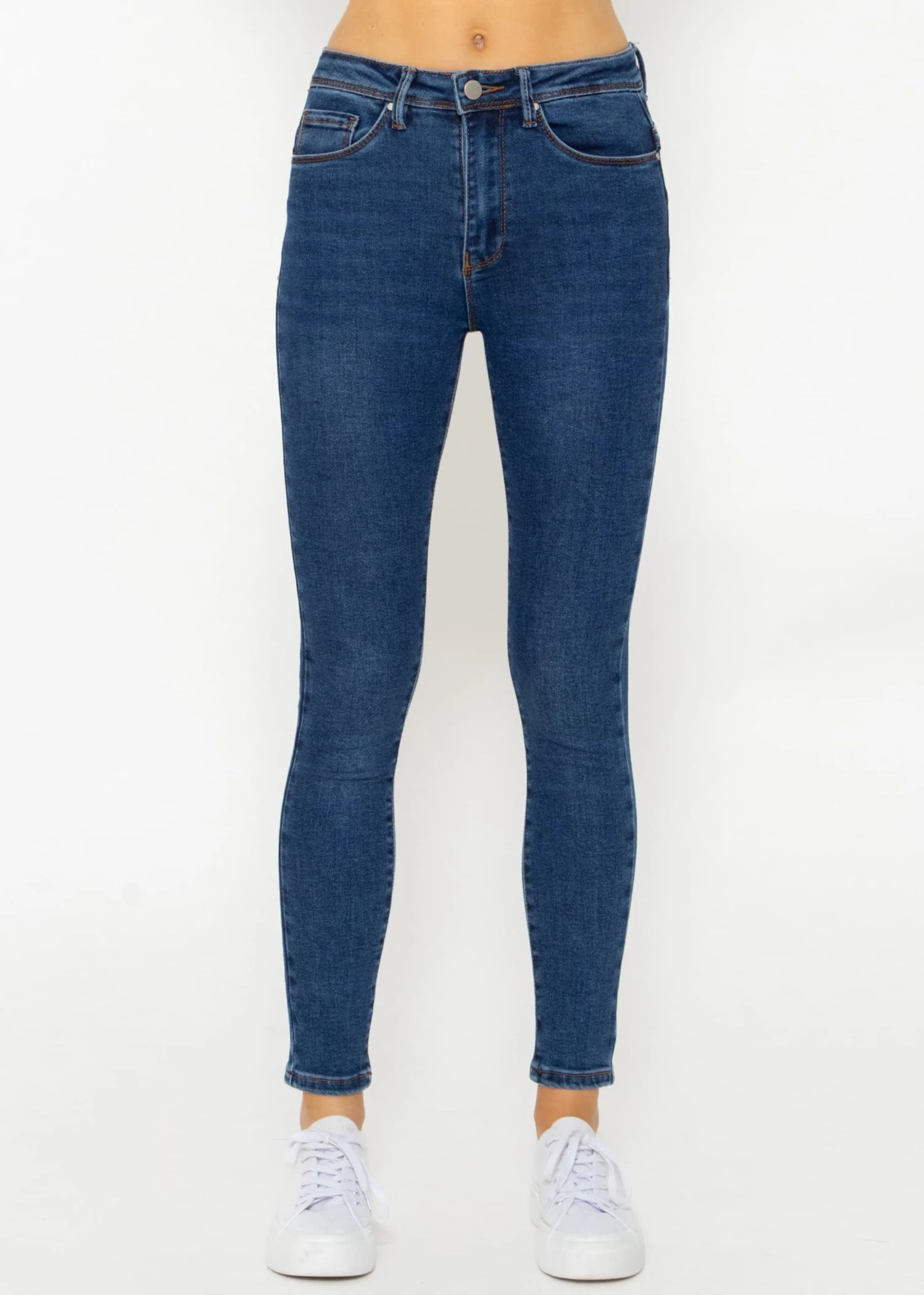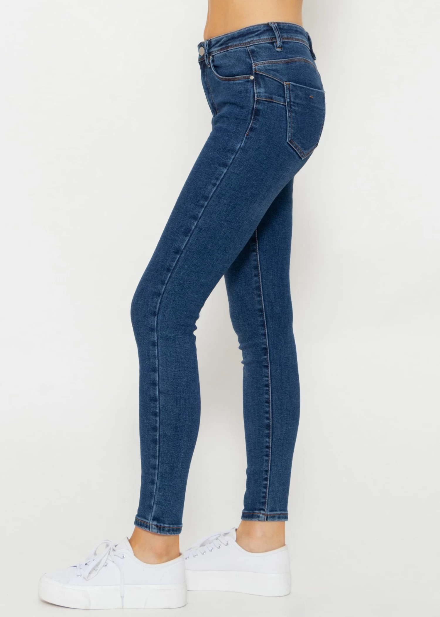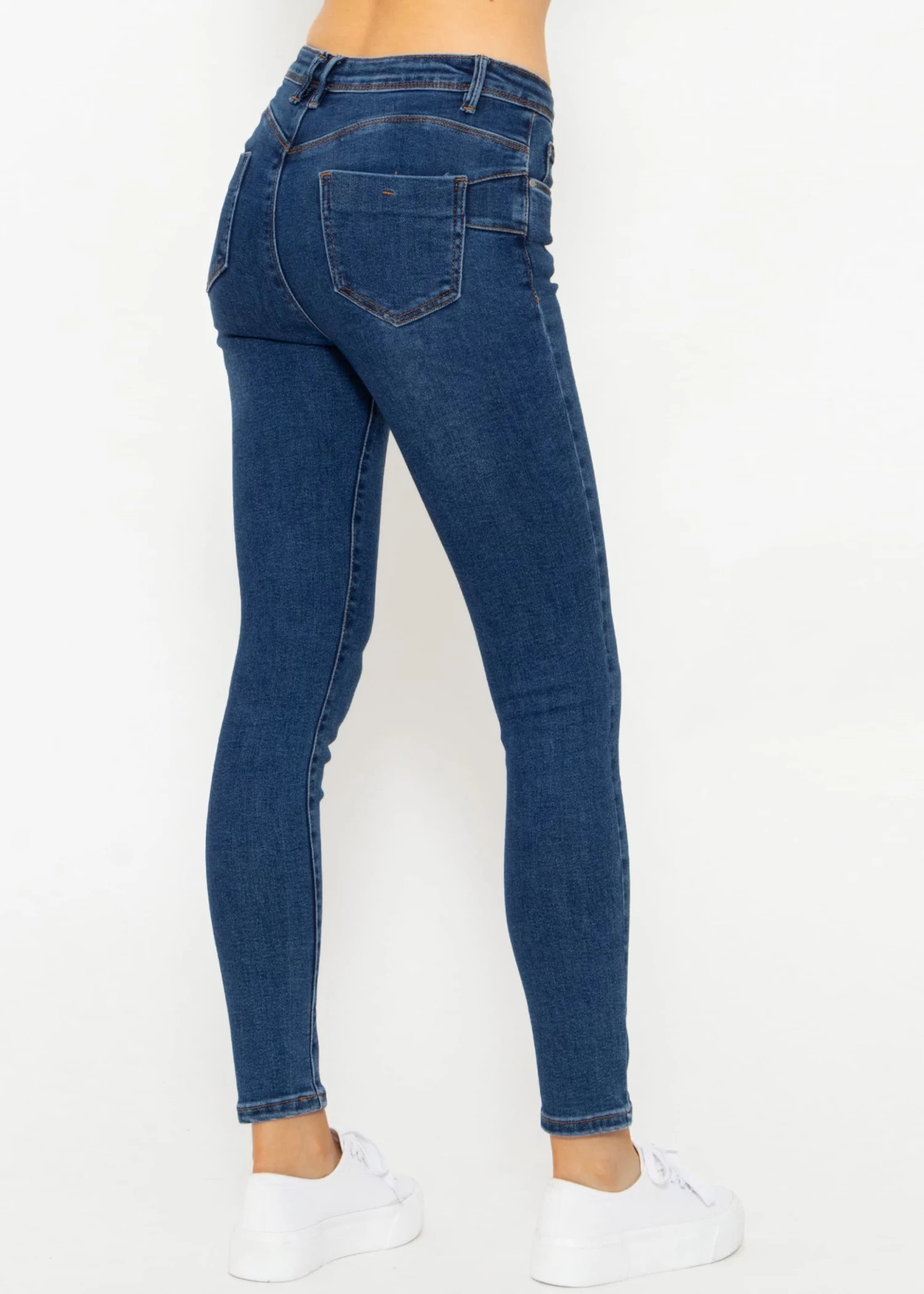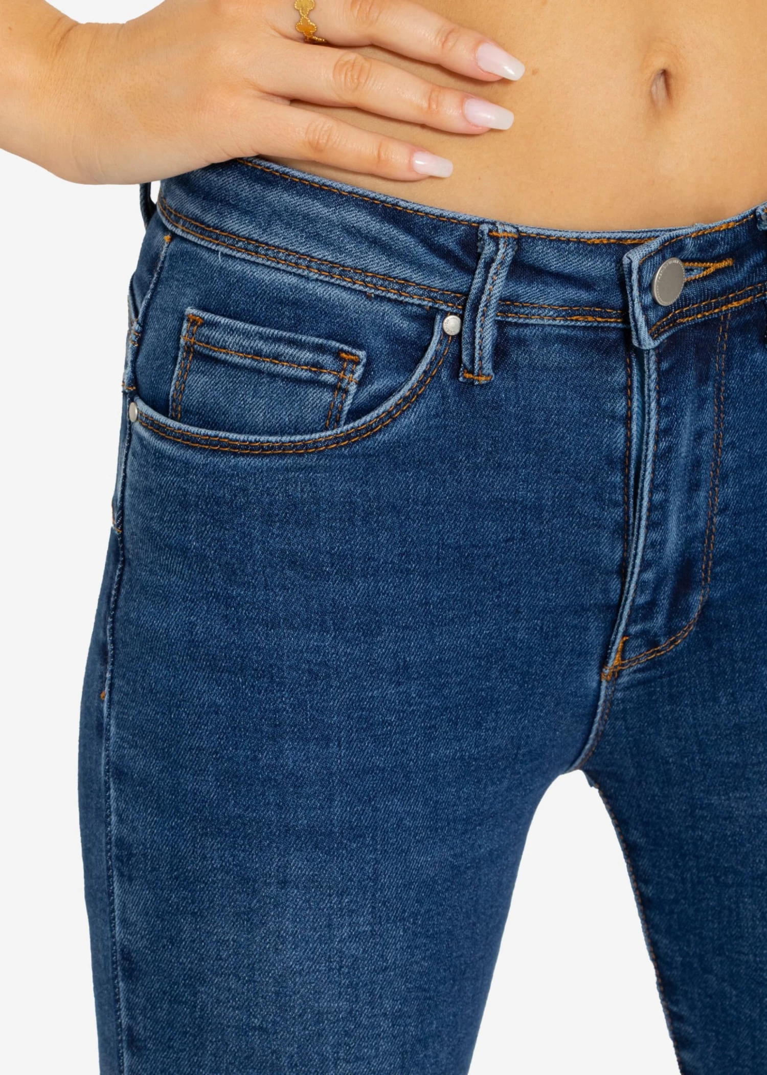 Stretchy Push-Up Jeans in Blau. Das Modell besitzt einen Knopf- und Reißverschluss, enganliegende Passform, normale Leibhöhe und ist im 5-Pocket-Design gehalten. Sie ist aus einem elastischen, weichen Baumwollgemisch gefertigt, ist super bequem und sitzt optimal. Der Skinny-Fit bringt deine Beine gekonnt zur Geltung und streckt sie optisch. Durch die diagonale Nahtführung entsteht ein Push-Up-Effekt. Für einen angesagten Look und idealen Kontrast, empfehlen wir die Jeans mit Oversized-Teilen zu kombinieren. So kannst du ein weites, cooles T-Shirt und einen locker geschnittenen Blazer oder auch einfach unsere Musselinbluse dazu stylen.