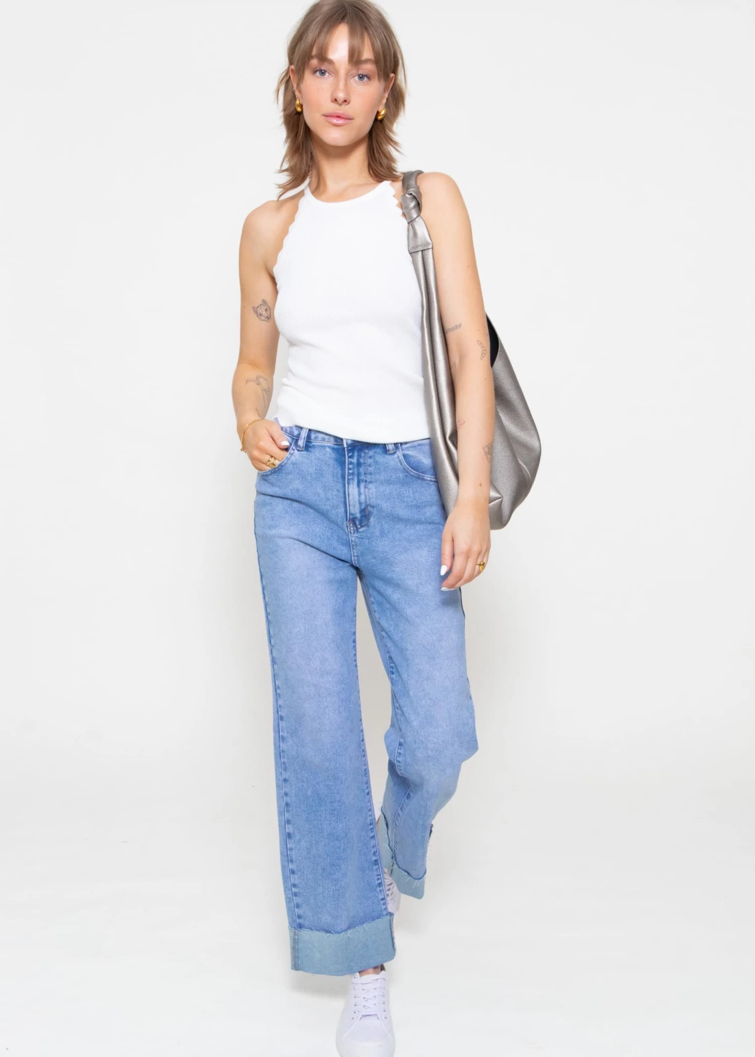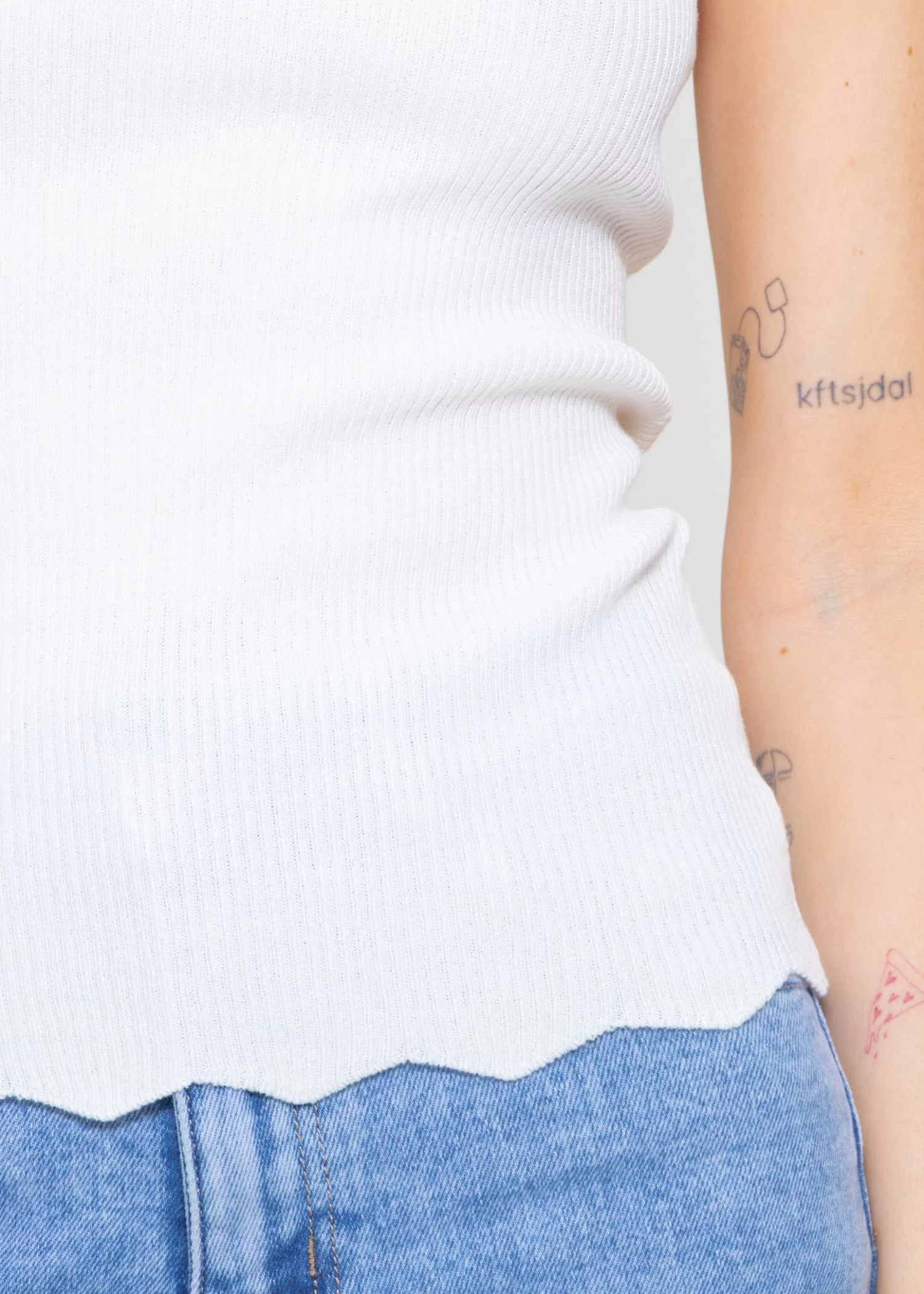 Feines Strick Top in Viskose Rip. Bogenkanten am Armausschnitt und Saum geben dem Sommer-Top eine feminine Note.