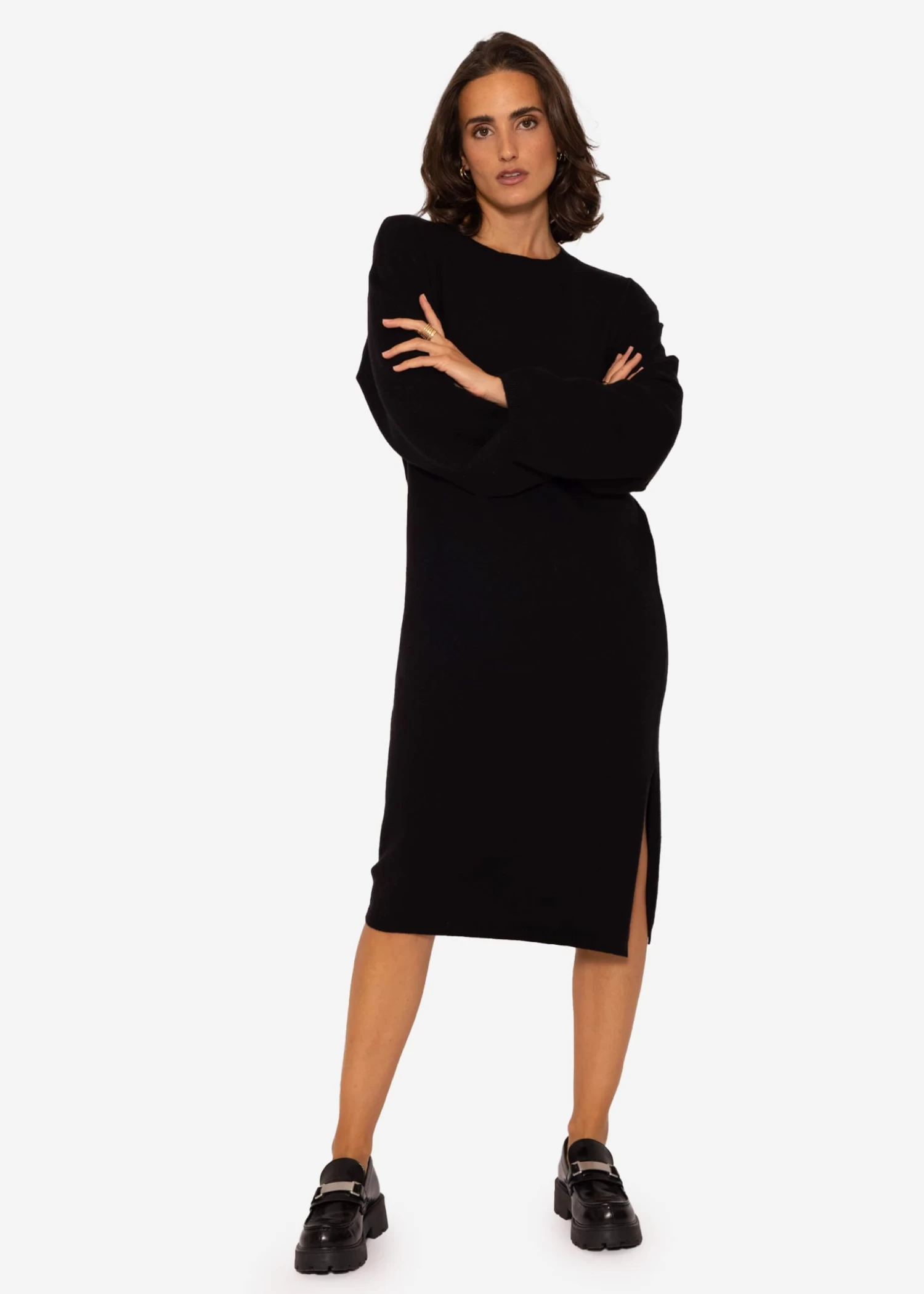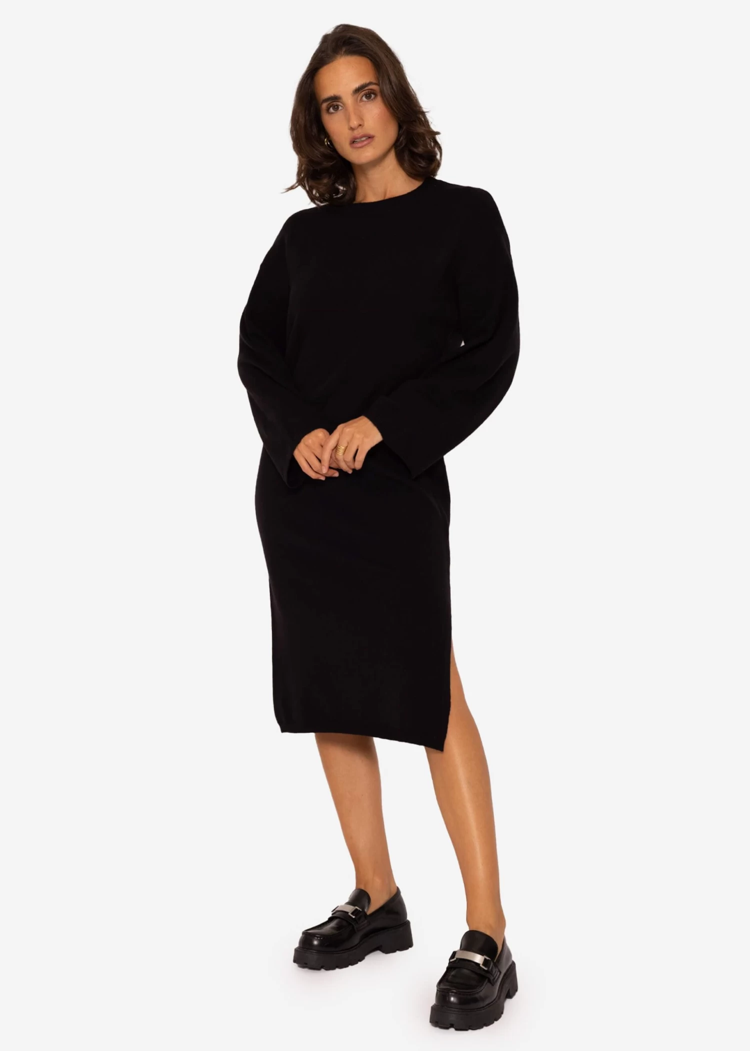 Strickkleid mit Seitenschlitz in Midi-Länge in schwarz