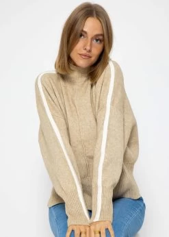 Strickpullover mit hellen Streifen in beige
