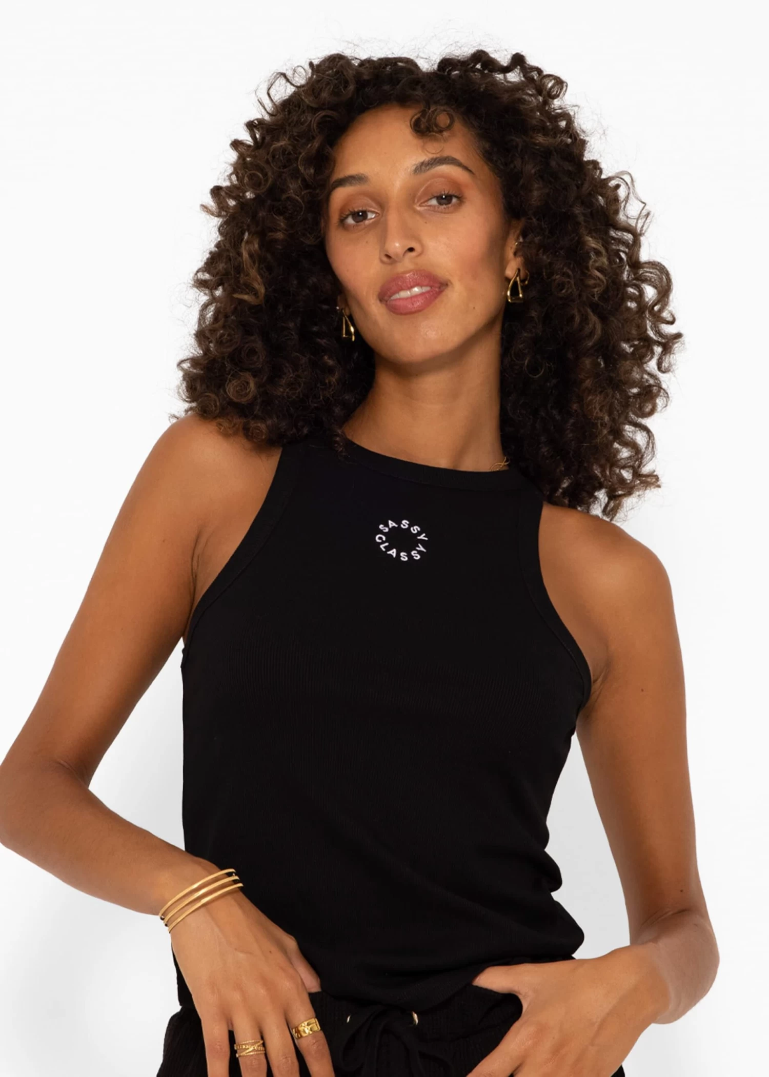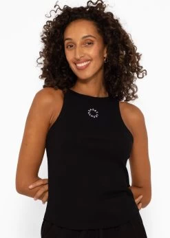 Dieses gerippte Tank Top ist nicht nur ein Basic-Teil, sondern eine wahre Stiloffenbarung, die durch ihre feinen Details aufgewertet wird. Das Modell besitzt einen Rundhalsausschnitt, ein ärmelloses Design sowie einen bequemen Armausschnitt, der uneingeschränkte Bewegungsfreiheit garantiert. Auf der Vorderseite befindet sich die exquisite SASSYCLASSY Stickerei, die dem Top eine unverwechselbare, luxuriöse Note verleiht. Sie verwandelt das Top in ein echtes Fashion-Highlight. Die längs laufende Naht in der Mitte des Rückens sorgt für eine harmonische Balance und unterstreicht die Liebe zum Detail. Der abgerundete Saumabschluss vervollständigt das Design.
