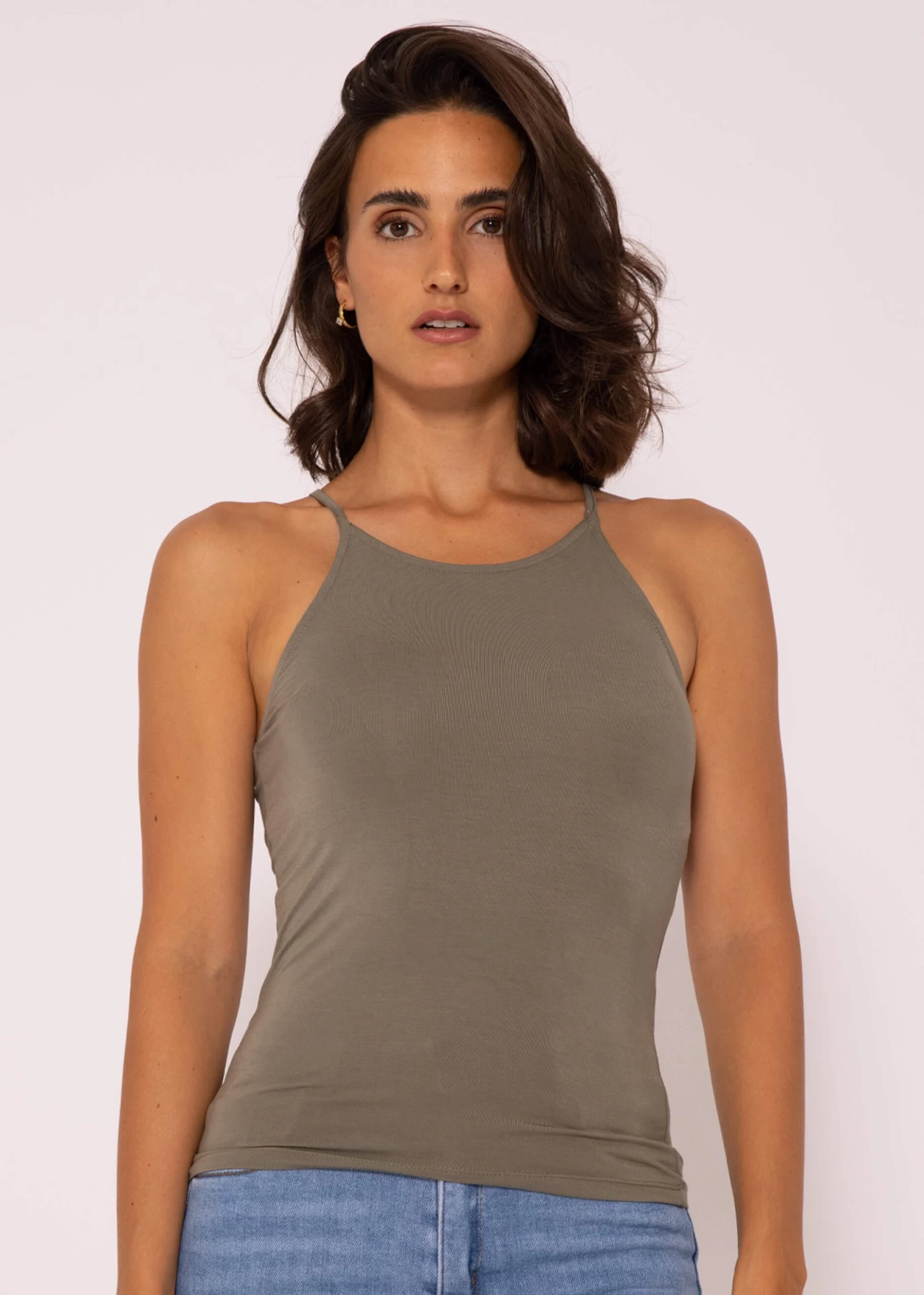 Basic Unterzieher Top mit Trägern. Es ist auch in mehreren Farben erhältlich.