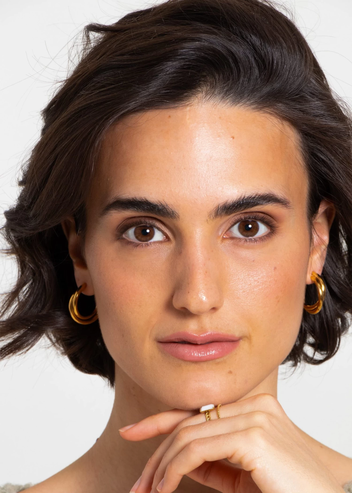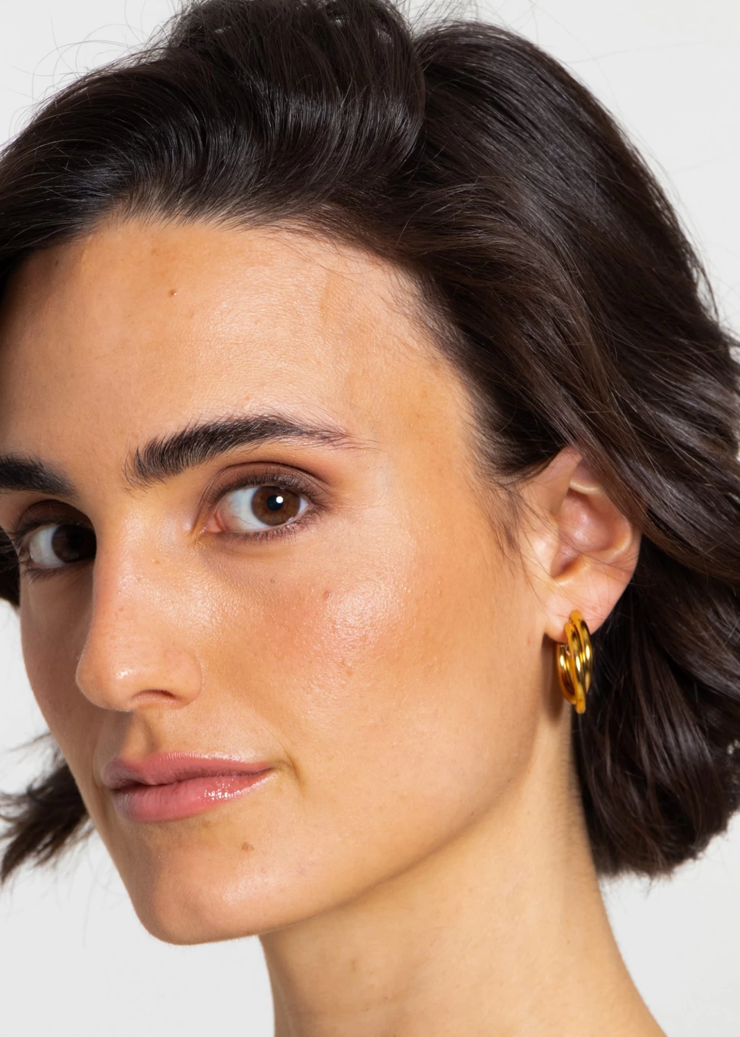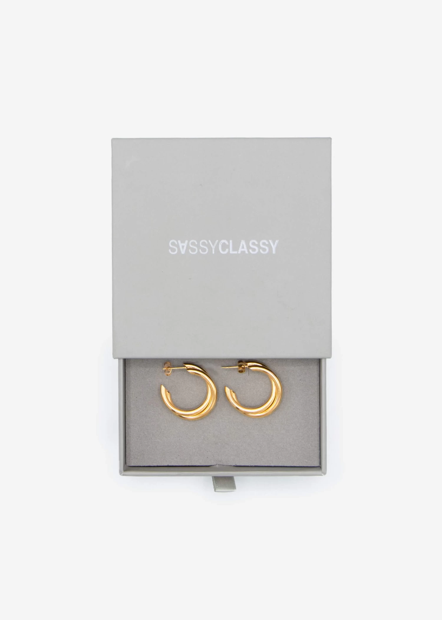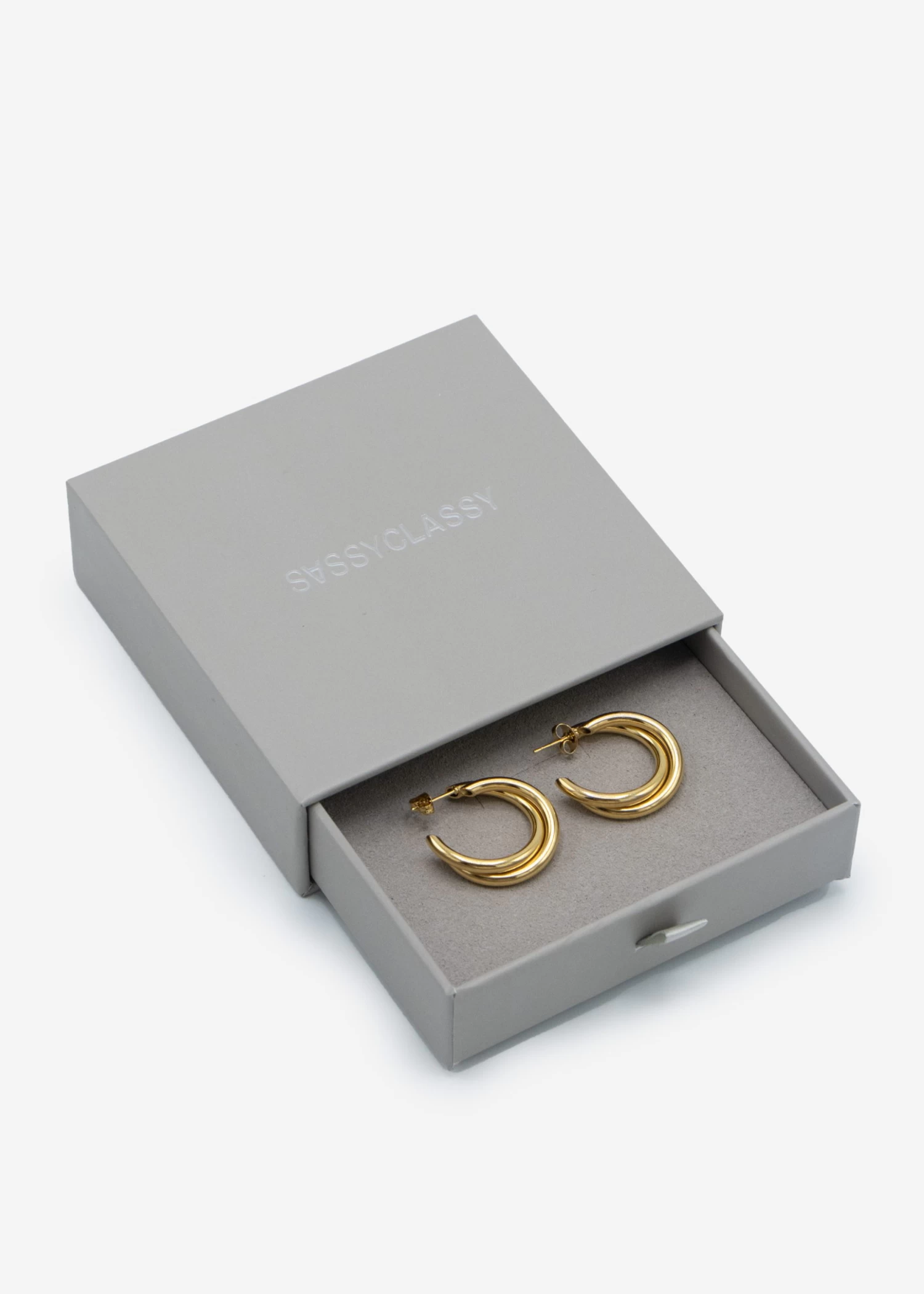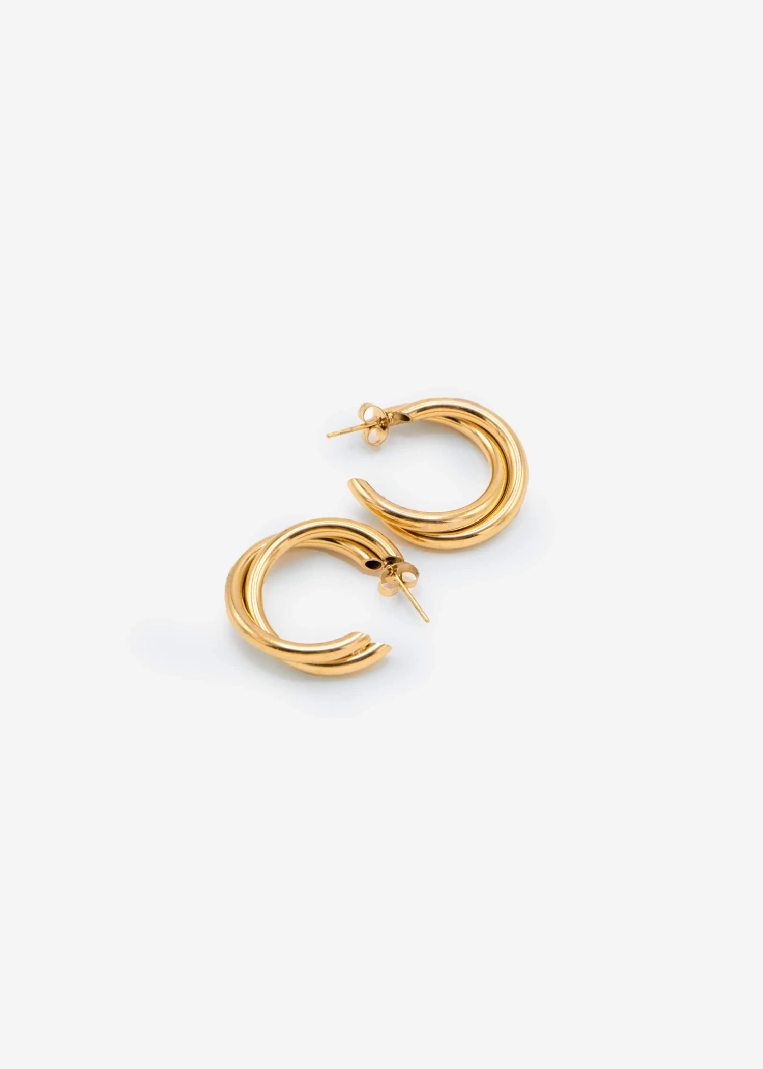 Diese einzigartigen Twist Creolen präsentieren sich in einem offenen, verschlungenem Design, das eine subtile Balance zwischen Kühnheit und Raffinesse schafft. Das Modell kommt in einer goldfarbenen Ausführung, die Stil verkörpert. Die ineinandergreifenden Ringe erzeugen eine faszinierende Optik, die deinen Look auf ein neues Niveau hebt. Die Creolen besitzen einen klassischen Steckverschluss.
