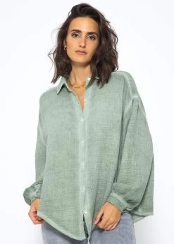 Verwaschene Musselin Bluse in Khaki