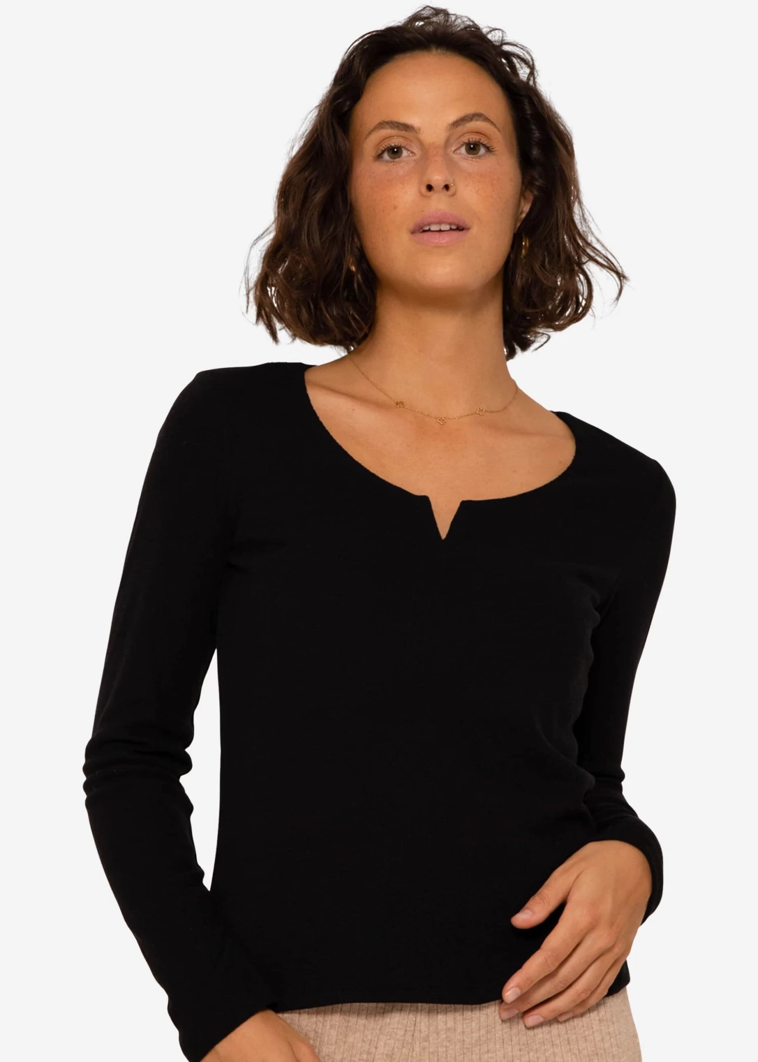 Dieses exklusive Langarmshirt vereint Qualität und raffiniertes Design, um deinen Bedürfnissen gerecht zu werden. Es wurde aus extrem weichen, warmen Material gefertigt, um höchsten Tragekomfort zu bieten. Das Modell besitzt auf der Vorderseite eine 2-lagige Verarbeitung Stoff, um Stabilität und zusätzliche Wärme zu garantieren. Das gerippte Material und die anliegende Passform tragen zu einem modernen Touch bei. Highlight bildet der weite Rundhalsausschnitt, der mit einem kleinen, subtilen V-Ausschnitt versehen ist. Ein Draht ist in das dezente V-Detail eingearbeitet, um eine elegante Passform zu gewährleisten.