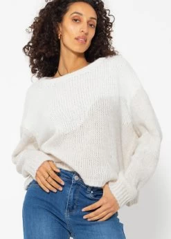 Zweifarbiger Strickpullover in Offwhite und Beige